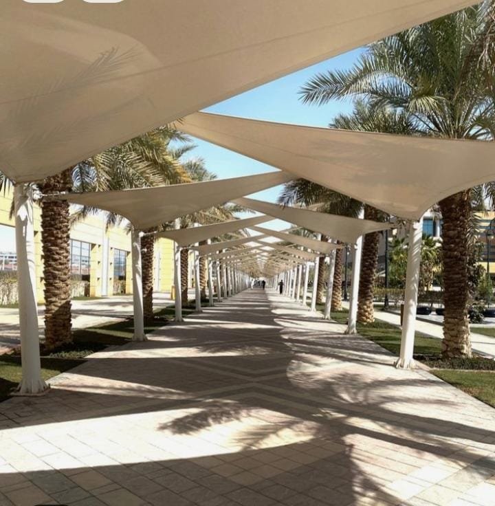 - مظلات الشد الإنشائي – تصاميم هندسية رائعة للمساحات الكبيرة